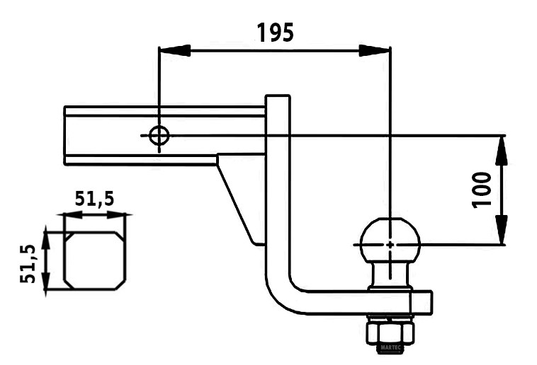 Vzdálenost od upevňovacího otvoru ke středu koule: 195 mm