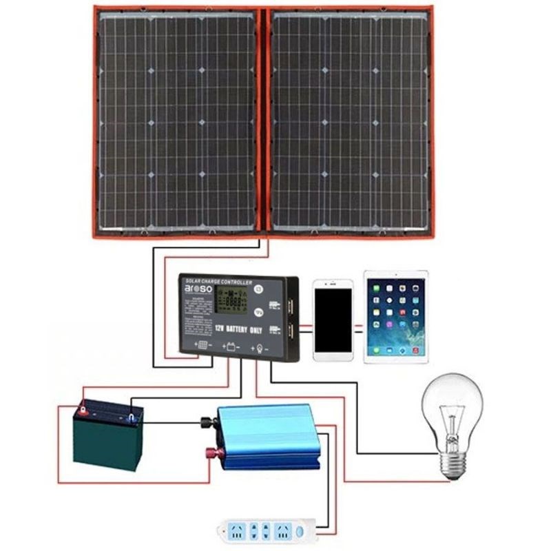Popis: Aroso rozkládací solární panel s PWM regulátorem 110W 12V/24V 106x73cm