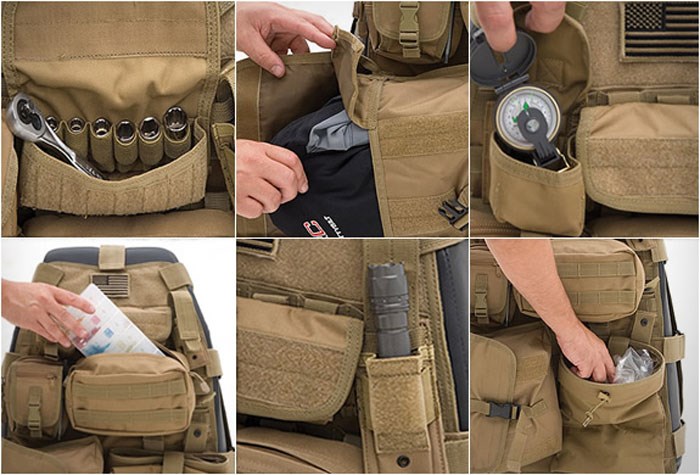 různé kapsy a úchyty