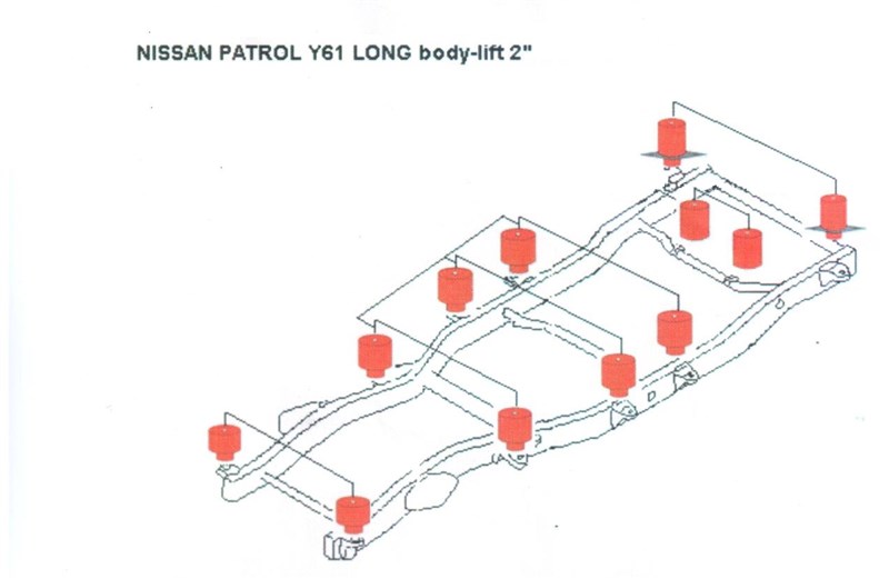 Popis: Body lift mezi karoserii a rám Nissan Patrol Y61 5 dv. + 50 mm