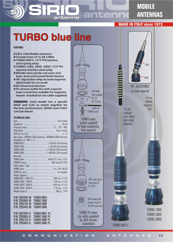Popis: CB anténa Turbo 3000 SIRIO 171 cm