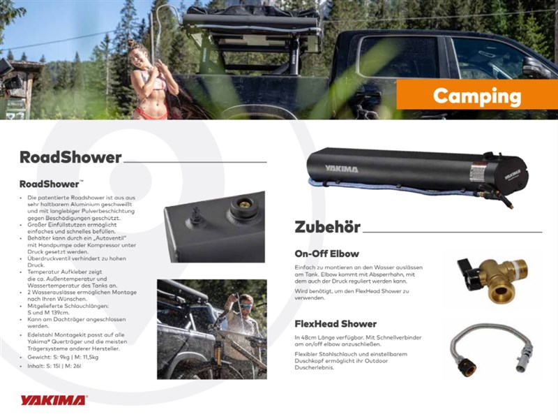 S cestovní sprchou Yakima S (small) můžete mít vodu na cestách všude kde potřebujete.