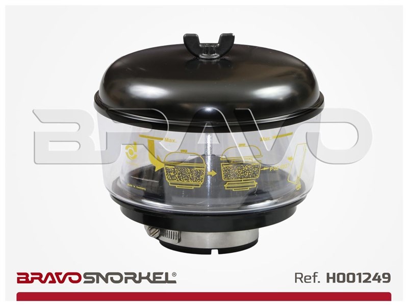 Popis: Cyklon Donaldson filtr na zvýšené sání (šnorchl), 77mm, 5m3/min