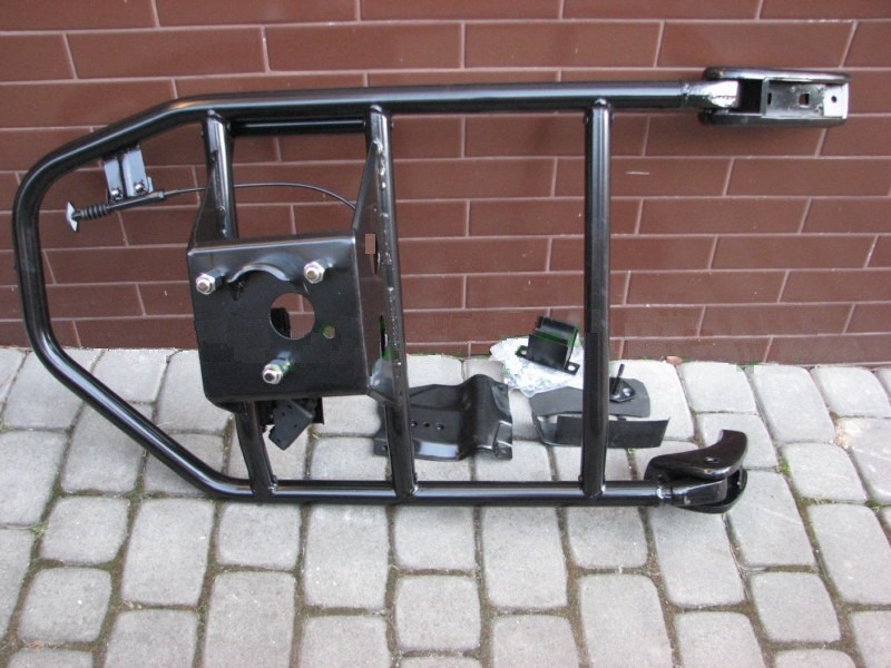 Držák rezervního kola namontován na zadních dveřích. Držák má rukojeť se zámkem pro snadné a rychlé připojení do zavazadlového prostoru. Určeno pro Modely Toyota LC100. Aretace držáku rezervy za použití pomocných členů viz fotky.