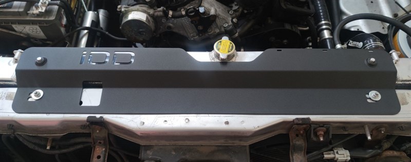 Úchyt je vyroben z hliníku a práškově lakovaný. Sada obsahuje kryt chladiče a montážní příslušenství. Rozteč otvorů pro kotvící kolíky chladiče je 665 mm, gumové silenbloky kolíků jsou součástí sady.