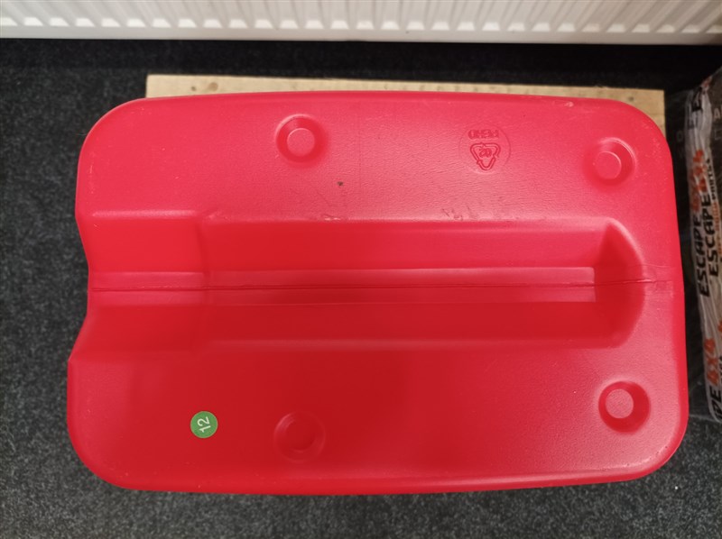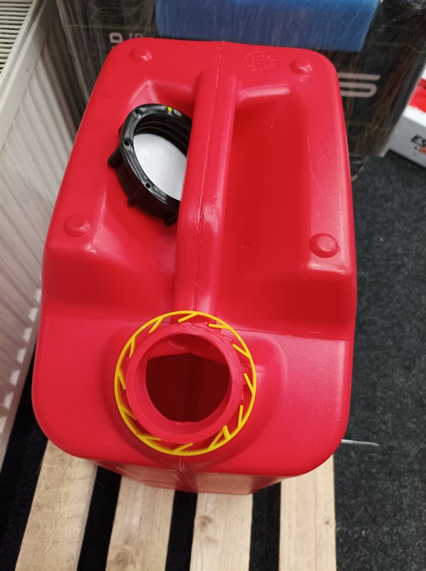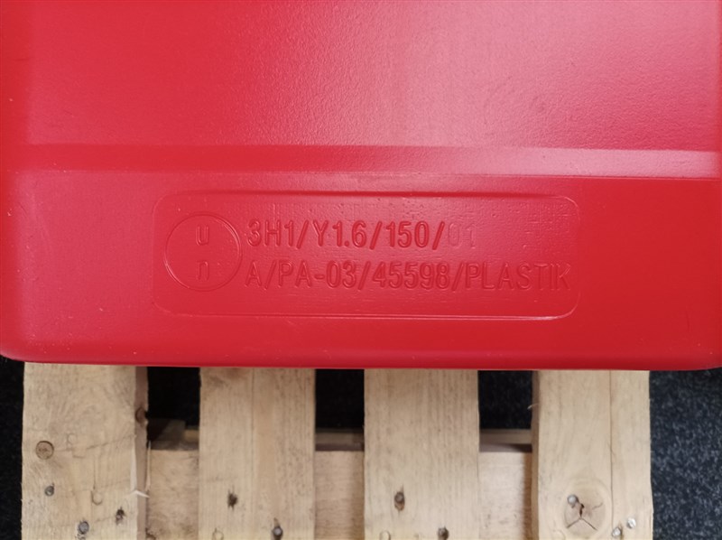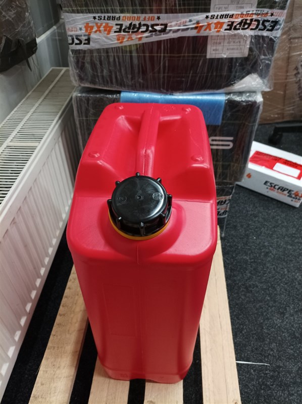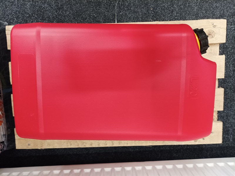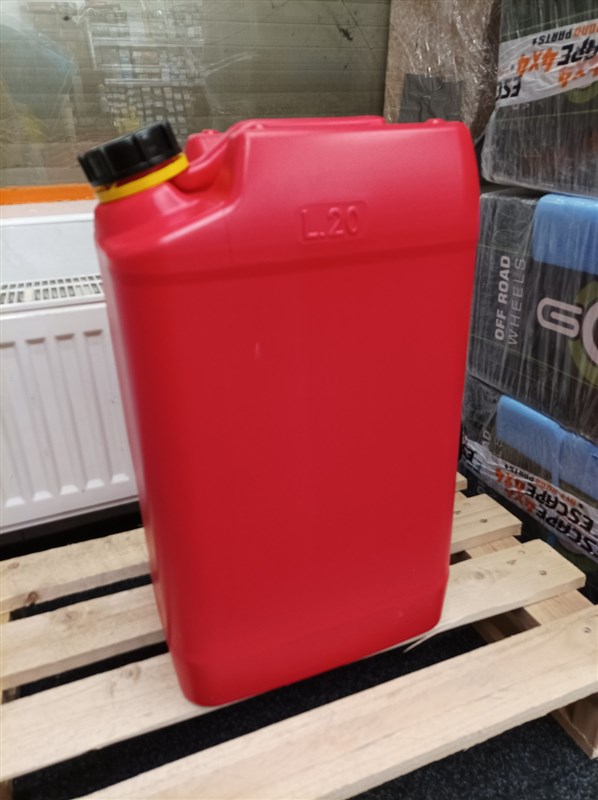 Plastový kanystr o objemu 20L, červená barva, úchyt na horní části, bez nálevky. Kanystr na PHM, vhodné na naftu i benzín.