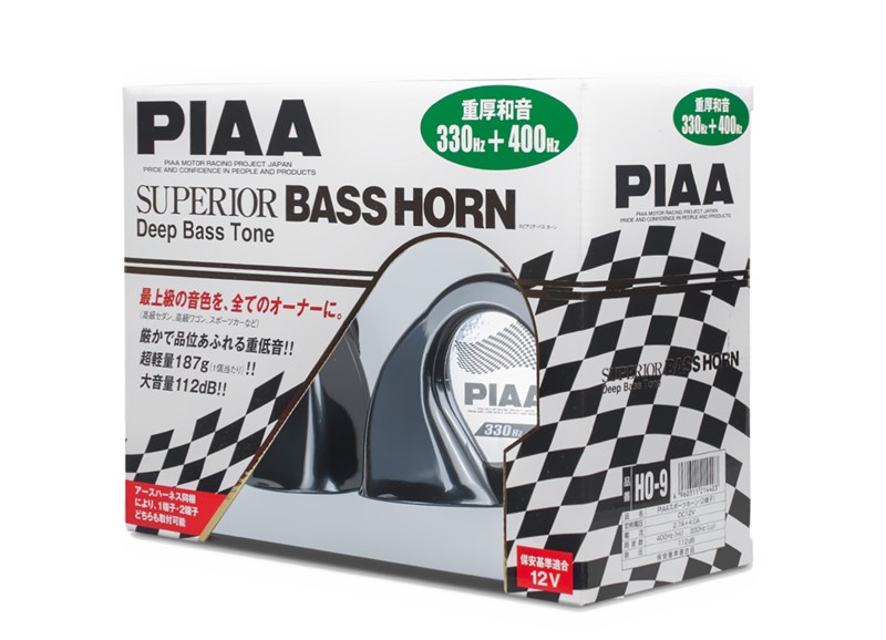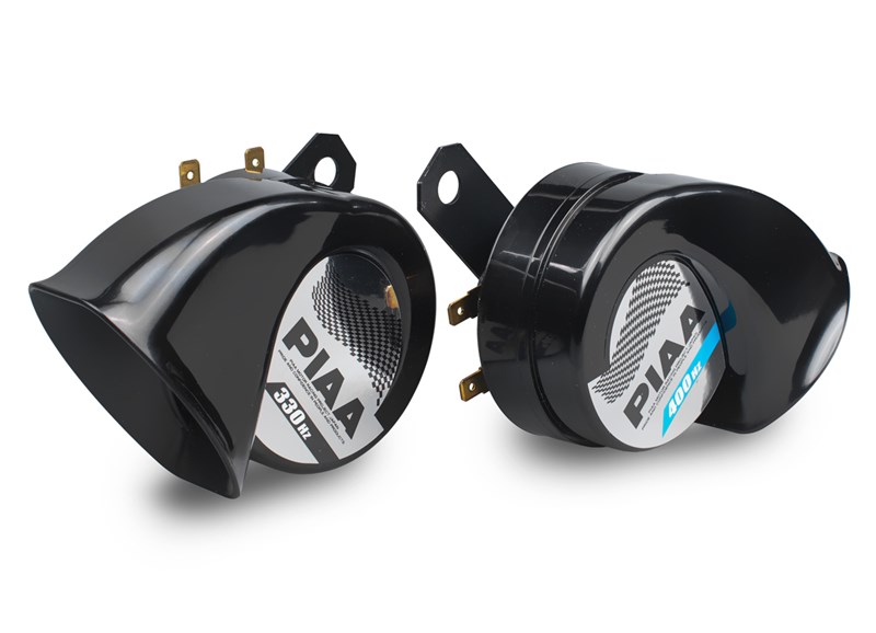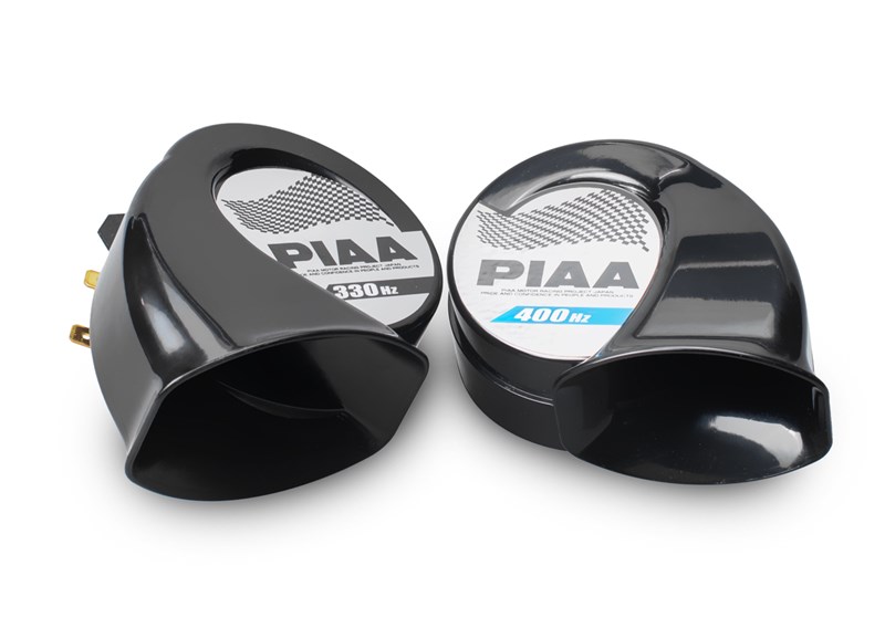 Dvoutónový klakson japonského výrobce PIAA s extra hlubokým tónem "Superior Bass Horn" 330Hz + 400Hz.