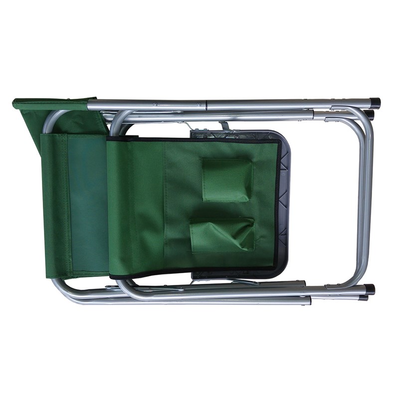 Robustní, turistická skládací židle s policí.