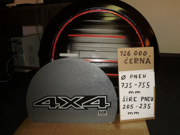 Plastový kryt rezervního kola, australské firmy EGR. Kryty jsou zamykací včetně zámku a klíče. Rozměry viz foto. Jednoduchá montáž. Nápisy jsou přiloženy a lepí se na kryt pomocí 3M pásek, vše je součástí balení.