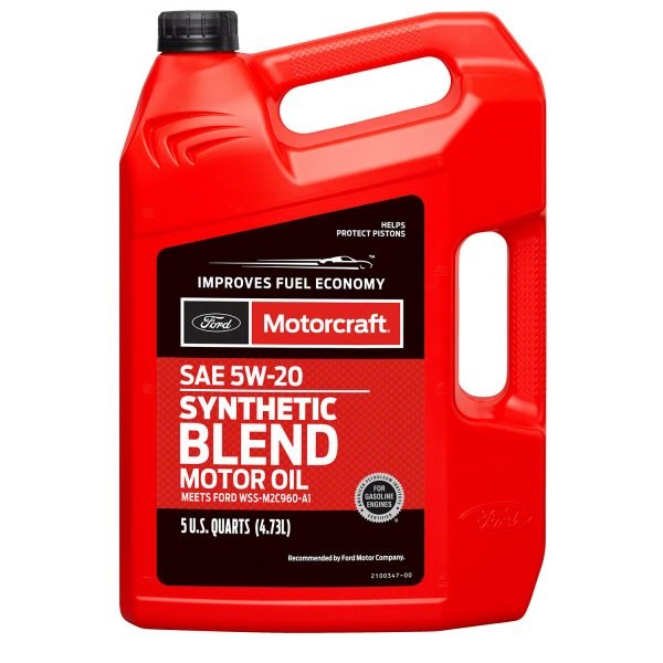 | Motorcraft® SAE 5W-20 Synthetic Blend Motor Oil is a premium-quality motor oil recommended by Ford. It is API Certified for gasoline engine service ILSAC GF-5 and meets API SN/Resource Conserving and SN PLUS specifications. Features: