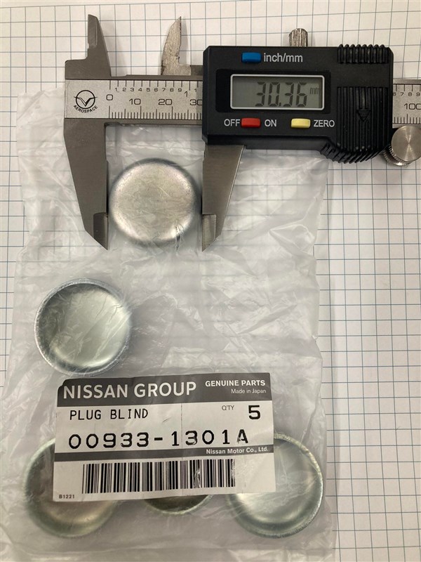 Protimrazová zátka (mrazovka) pro Nissan Patrol Y60 / Y61 s motorem 2.8 diesel. Originál Nissan, OE číslo 00933-1301A (PLUG BLIND). Cena za 1ks mrazovky. Průměr 3cm.