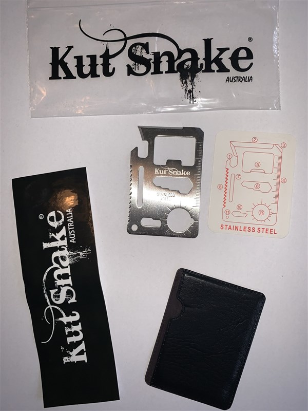 Praktický doplněk do Vaší pěněženky - o velikosti kreditní karty. Multitool od australského výrobce KutSnake. Stainless steel.