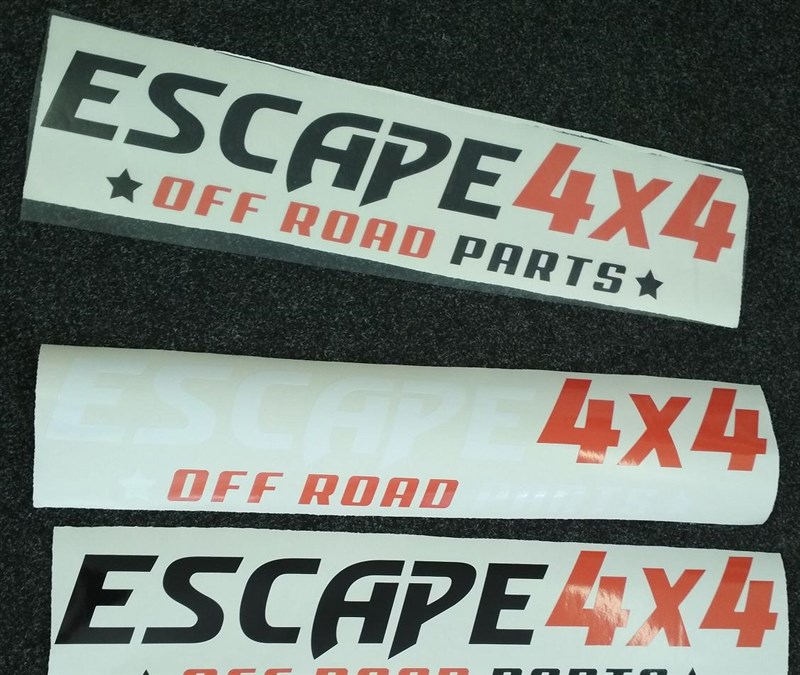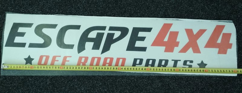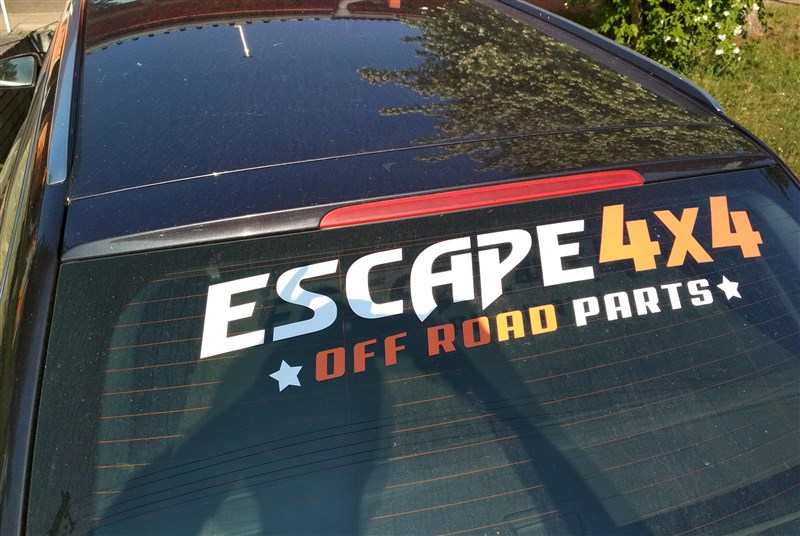 Nálepka Escape4x4 offroad parts na přenosové fólii.