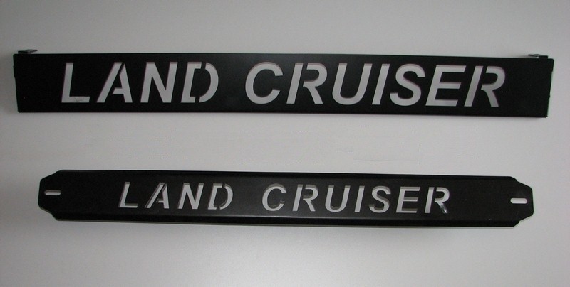 Nápis Land Cruiser na expediční zahrádku. Dvojitá prášková barva. Větší nápis na předek zahrádky, menší nápis na konec zahrádky. Cena za komplet 2ks.