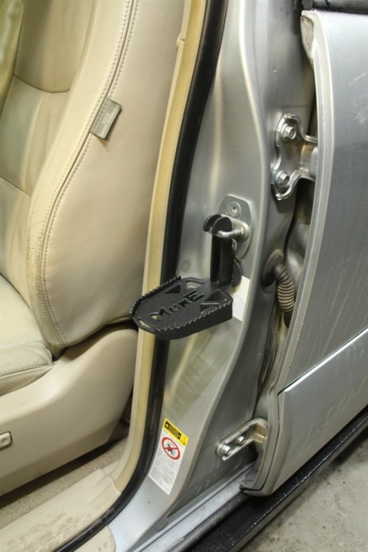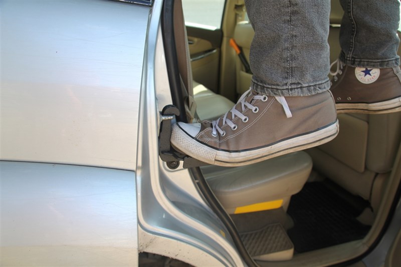Nášlap pro snadný přístup na střechu auta / zahrádku. Snadná montáž/demontáž, uchycení na zámek dveří na karoserii auta. Univerzální díl. Černá prášková barva.