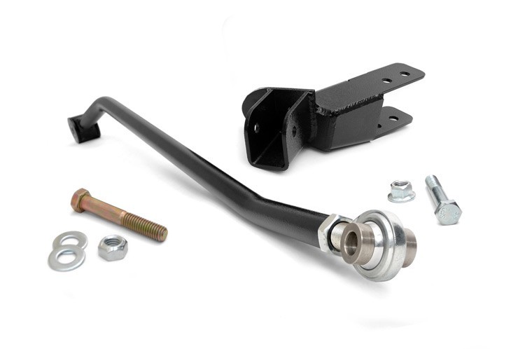 Držák na přední seriovou Panhard tyč. Dále je v sadě přední panhard tyč, určeno pro lift 4" - 6" (+10 až +15 cm). Ekonomické řešení pro správné umístění nápravy při zvednutí vozu. Kvalitní polyuretan a uniball.
