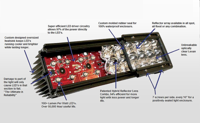 Vylepšete své offroad vozidlo o tento světlomet a budete v terénu vidět až o 100% lépe než s klasickými světlomety. Nízká spotřeba nezatěžuje zbytečně alternátor a vysoká účinnost překoná xenony i halogenové světla. Svítivost je desítky tisíc hodin a konstrukce je vyrobena k použití v terénních autech, čtyřkolkách...