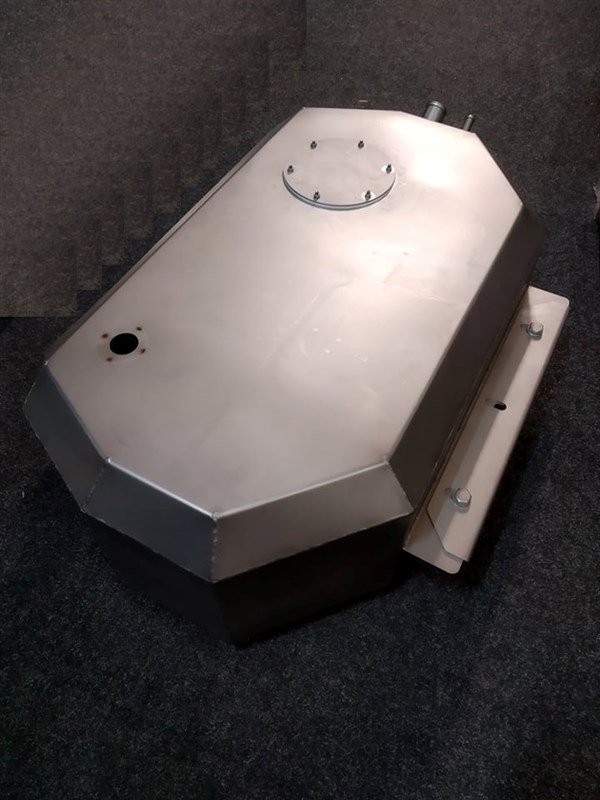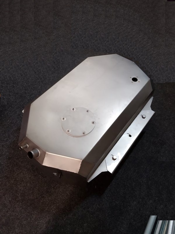 Tato nerezová nádrž nahrazuje tovární hlavní palivovou nádrž. Pasuje do továrního úchytu na rámu, plovák (hladinoměr) a palivové potrubí zůstane ze sériové nádrže. Objem nádrže je 98L což je originální objem seriové.