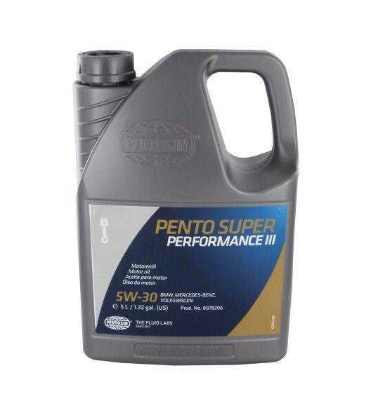 | Pento Super Performance III 5W-30 je nově vyvinutý vysoce výkonný motorový olej, který poskytuje prodloužené intervaly výměny oleje u moderních motorů. Za použití nejmodernější aditivní technologie a syntetických základových olejů byl smíchán olej „low SAPS“ („low generating oil“) způsobem, který zachovává katalyzátor a životní prostředí při zachování vynikajícího výkonu motoru. Vlastnosti a výhody:
