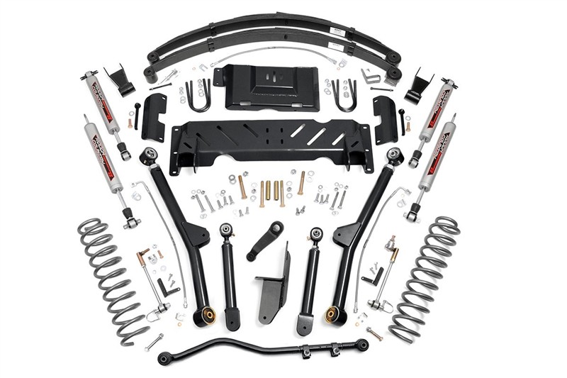Podvozek Long Arm Rough Country Lift Kit Jeep Cherokee XJ 6,5" obsahuje vše pro zvednutí podvozku o +16,25cm. Tlumiče plněné dusíkem, přední vinuté pružiny a zadní listové pružiny místo originálních listových per. Včetně montážního materiálu a panhardky.