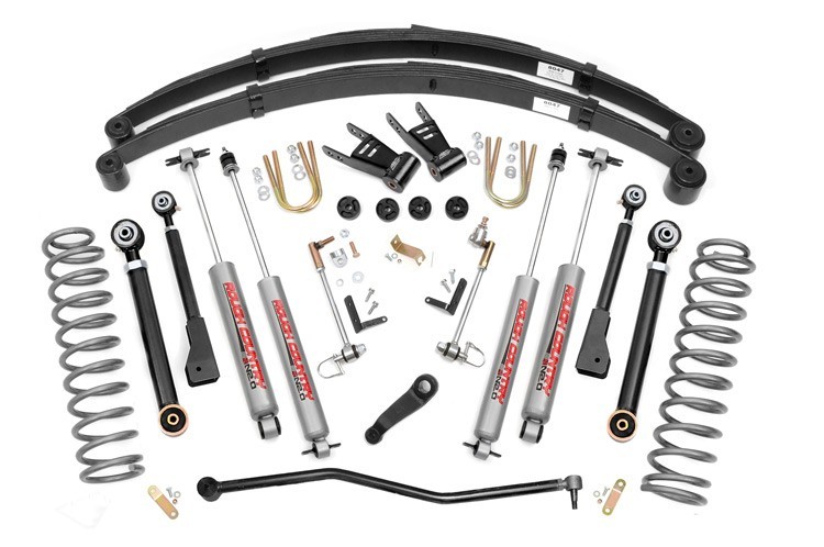 Podvozek Rough Country lift kit Jeep Cherokee XJ 6,5" obsahuje vše pro zvednutí podvozku o +16,25cm. Tlumiče plněné dusíkem, přední vinuté pružiny a zadní listové pera na místo originálních listových per. Včetně montážního materiálu a předních zesílených ramen.