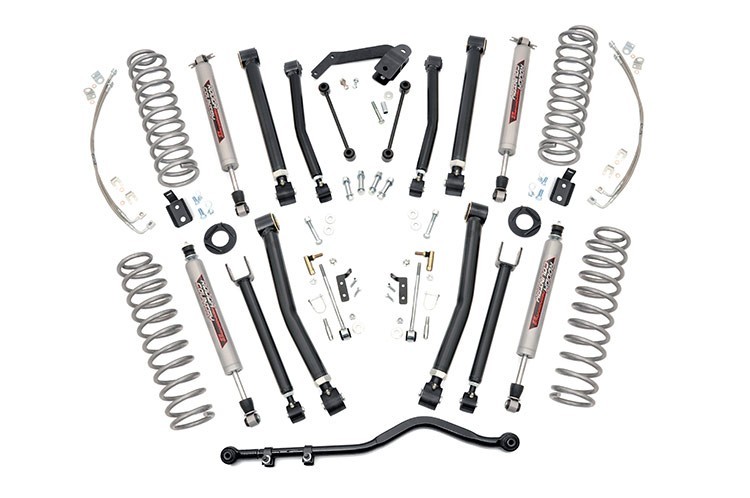 Podvozek Rough Country X Series Lift Kit Jeep Wrangler JK +4" (4 dv. verze) . Tato profi sada je určena pro zvýšení Wranglera o + 10 cm. V sadě jsou pružiny, tlumiče, ramena a mnoho dalších offroad doplňků.
