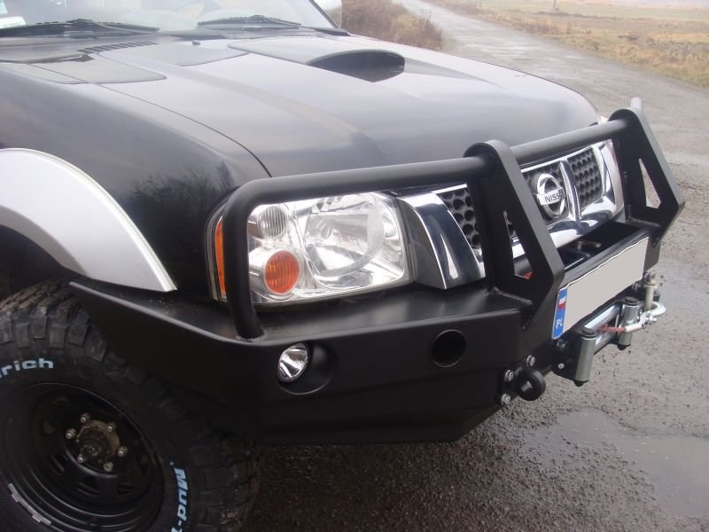 Popis: Přední pevnostní nárazník s bullbarem Nissan Navara D22 (01-04)