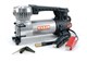 Připojení ke zdroji energie pomocí Heavy-duty svorek na autobaterii. Tlak v pneumatikách lze sledovat na analogovém manometru, který je integrován do těla kompresoru. Připojovací adaptér k ventilku je šroubovací pro zajištění pevného a těsného spojení.