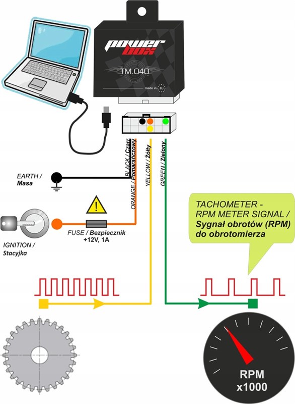 Modul umožňuje rekalibraci signálu tachometru nebo rychloměru.