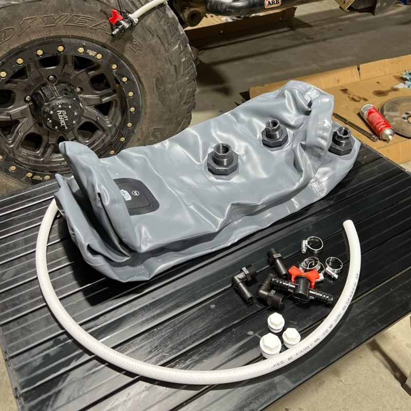 Skvělý způsob, jak sebou na cesty brát vodu. Po vyprázdnění lze měchýř snadno uložit. PVC bezpečné pro pití. Součástí balení je armatura. Velikost: 650x350x300