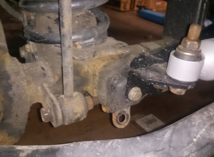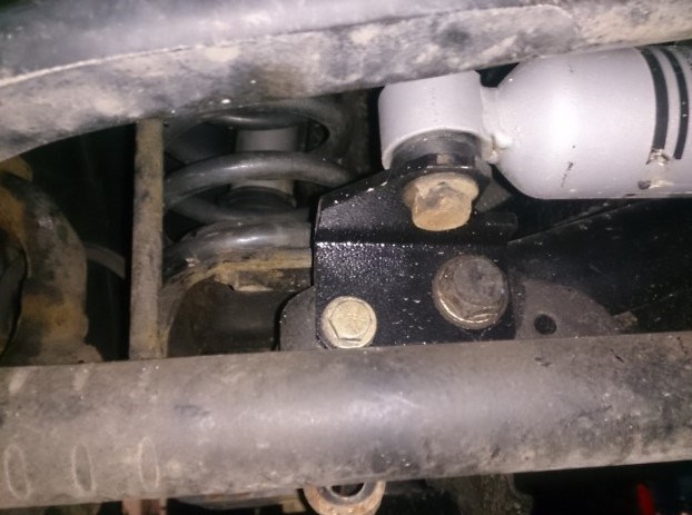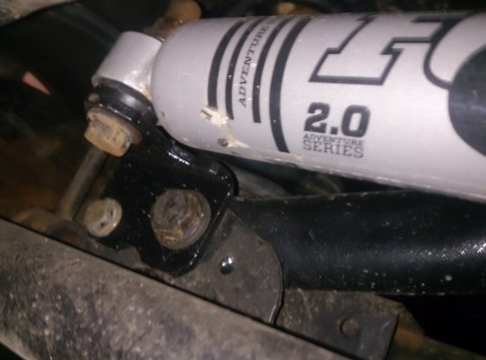 Přišroubovaní na přední nápravu umožňuje přemístění držáku tlumiče nad tyč řízení, což jej chrání před poškozením při jízdě v terénu. Vyrobeno z konstrukční oceli o tloušťce 5 mm. Tryskané a práškově lakované s texturou. Hmotnost přibližně 0,22 kg.