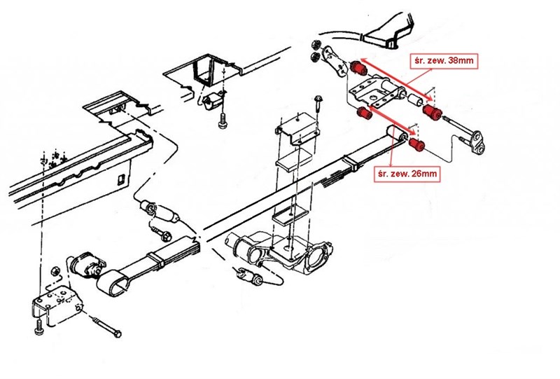 - pouzdra zadních listových per - zadní: 26 mm