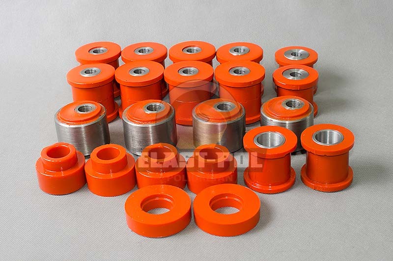 Pouzdra PUR Nissan Patrol Y60/61. Polyuretan je materiál 10 krát odolnější než guma. Použití polyuretanových komponent umožňuje nastavit auto na nejtěžší úkoly. Pro motorizace 2,8TD.
