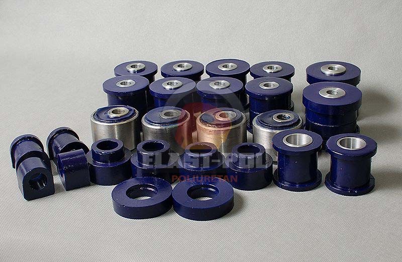 Pouzdra PUR Nissan Patrol Y60/61. Polyuretan je materiál 10 krát odolnější než guma. Použití polyuretanových komponent umožňuje nastavit auto na nejtěžší úkoly. Pro motorizace 2.8TD.