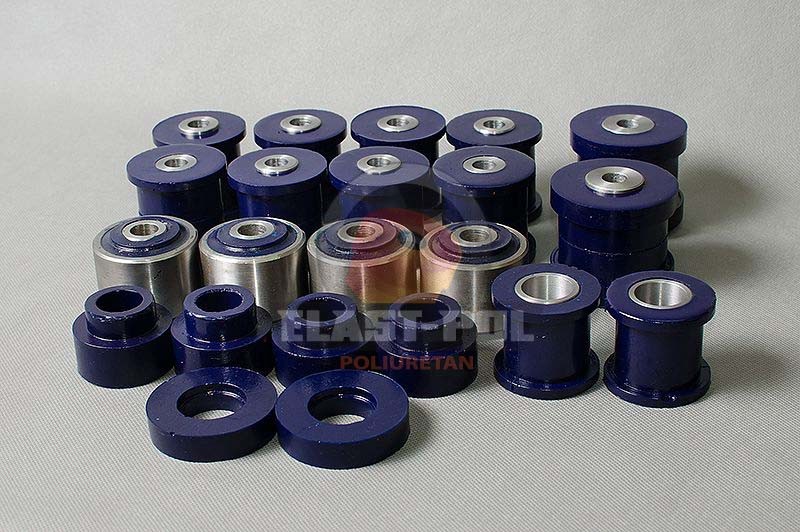 Pouzdra PUR Nissan Patrol Y60/61. Polyuretan je materiál 10 krát odolnější než guma. Použití polyuretanových komponent umožňuje nastavit auto na nejtěžší úkoly. Pro motorizace 2,8TD.