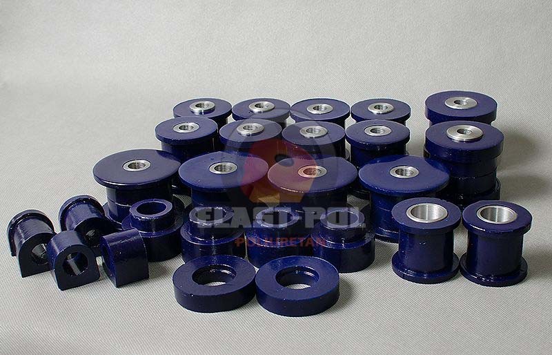 Pouzdra PUR Nissan Patrol Y60/61. Polyuretan je materiál 10 krát odolnější než guma. Použití polyuretanových komponent umožňuje nastavit auto na nejtěžší úkoly. Pro motorizace 2.8TD.