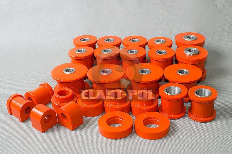 Pouzdra PUR Nissan Patrol Y60/61. Polyuretan je materiál 10 krát odolnější než guma. Použití polyuretanových komponent umožňuje nastavit auto na nejtěžší úkoly. Pro motorizace 2.8TD.