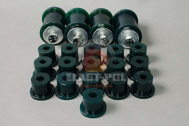 Pouzdra PUR Suzuki Samurai SJ413. Polyuretan je materiál 10 krát odolnější než guma. Použití polyuretanových komponent umožňuje nastavit auto na nejtěžší úkoly.