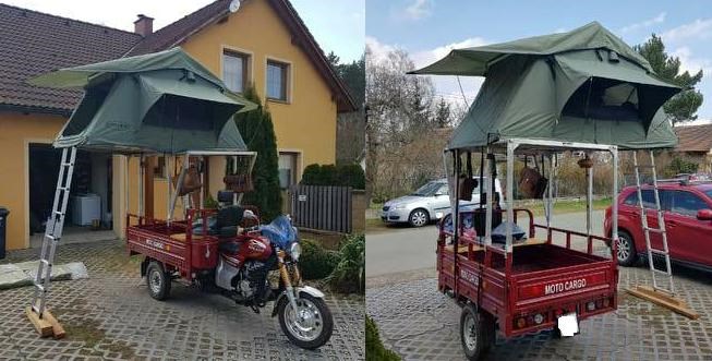 - krátká verze: žebřík je na konci stanu a po instalaci vestibulu je žebřík venku. Vestibul nemá podlahu.