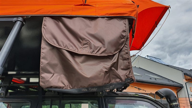 - kryt - 100% vodotěsný, vyrobený z PVC 1000D, silné stěny dokonale plní svůj úkol. Kryt s malým zipem usnadňuje otevírání a zavírání. Kryt je tak silný, že chrání stan nejen od větví, ale také odolává nárazům na silnější větve.