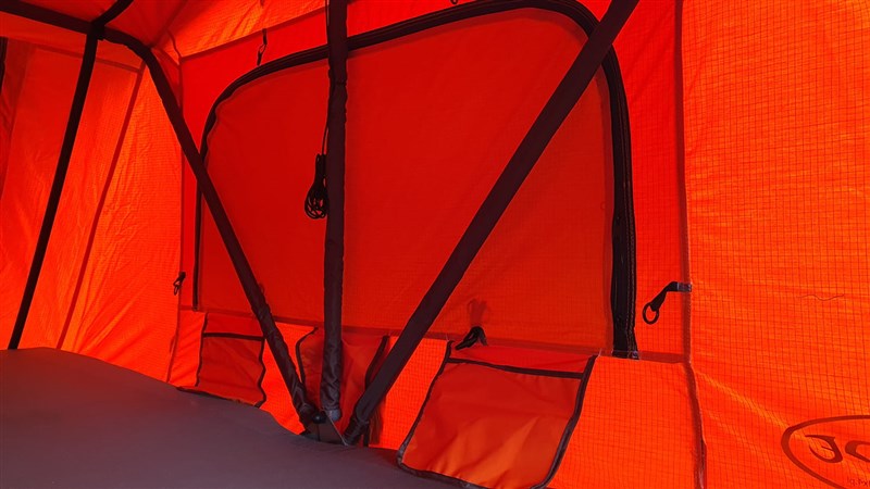 Podlaha je vyrobena z hliníku vyplněného izolační pěnou, na podlaze, matrace o tloušťce 6 cm s odnímatelným krytem. Okna jsou vybavena otevřenou moskytiérou, vnějšími žaluziemi vypnutými na tyčkách a těsným uzavřením zevnitř. Vstupní otvory s moskitierou a vzduchotěsným uzávěrem. Nastavitelné větrání v horní části stanu (s moskytiérou). Stan je zcela chráněn před nežádoucími hosty (komáři, hmyz).