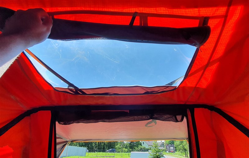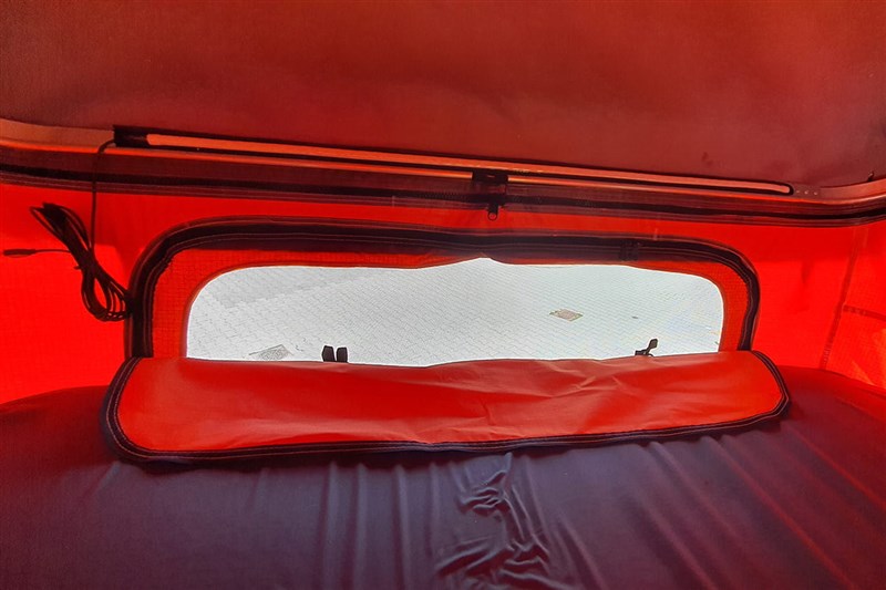 Stan je navíc vybaven střešním oknem a dvěma úložnými prostory na drobnosti zavěšenými vedle žebříku.