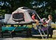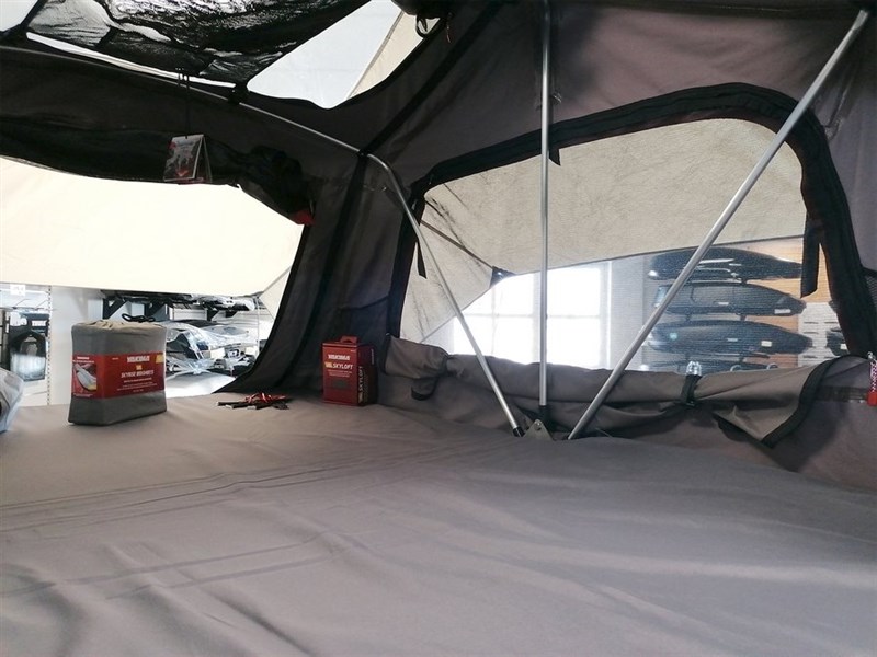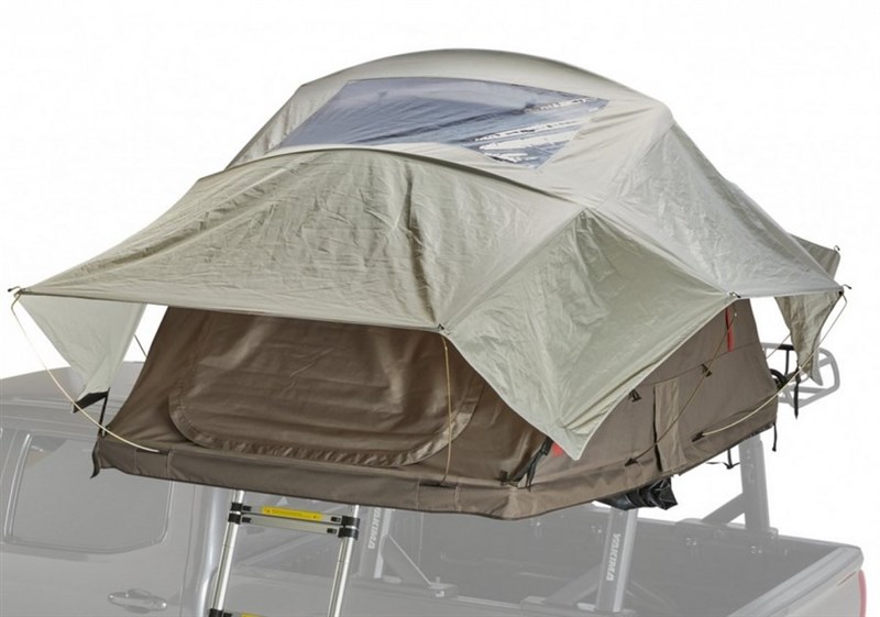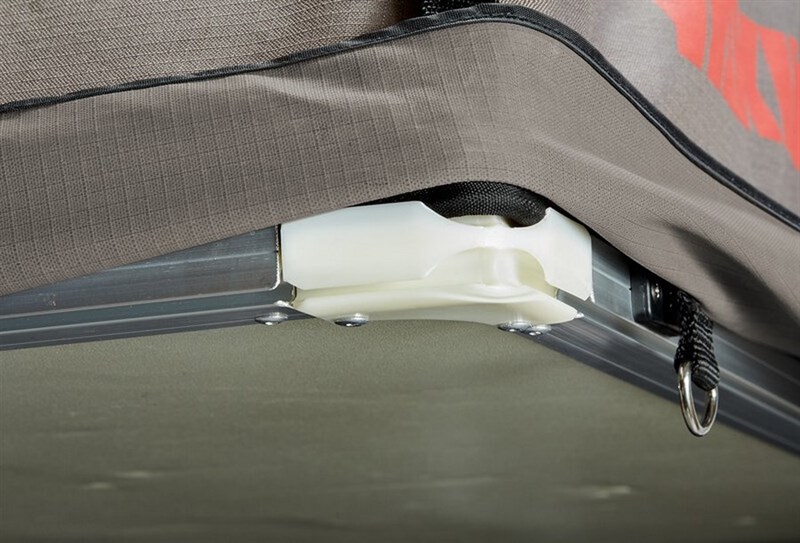 Ve složeném stavu je stan nízkoprofilový a výšku vozidla nenavýší více než běžný střešní box.