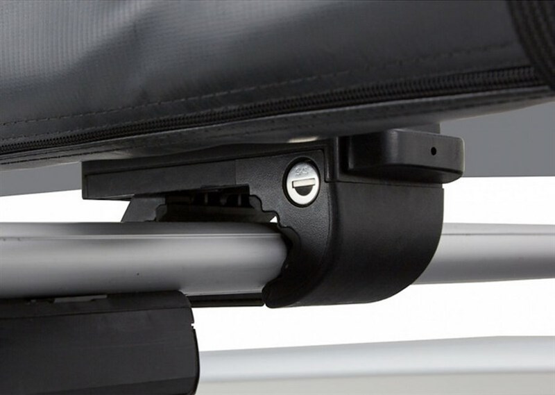 Pomocí upínacího systému se stan připevní na střešní příčníky a uzamkne.