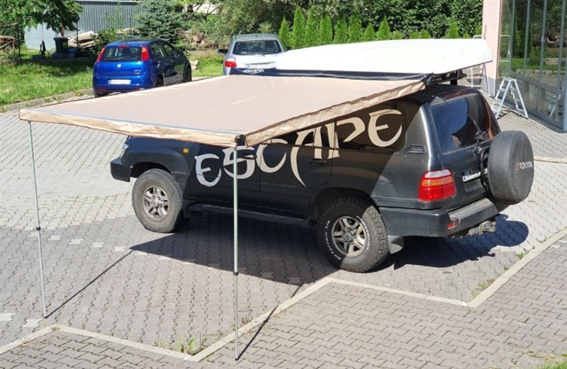 Střešní expediční roleta / markýza Escape4x4, rozměry 2 x 2.5m (2m na střeše vozu, 2.5 m rozložení do prostoru)