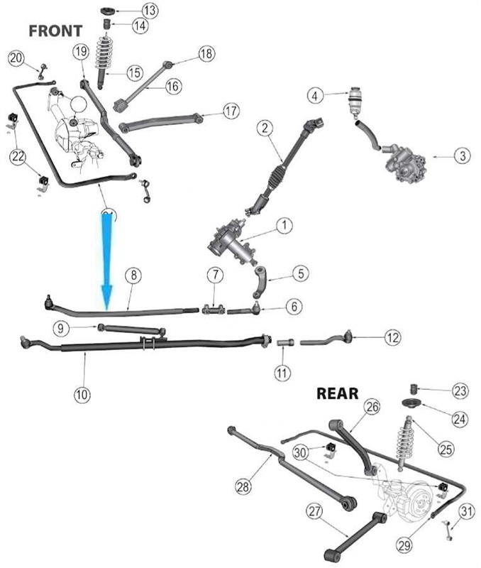 Popis: Tyč řízení levá horni 52060048AD Jeep Wrangler JK