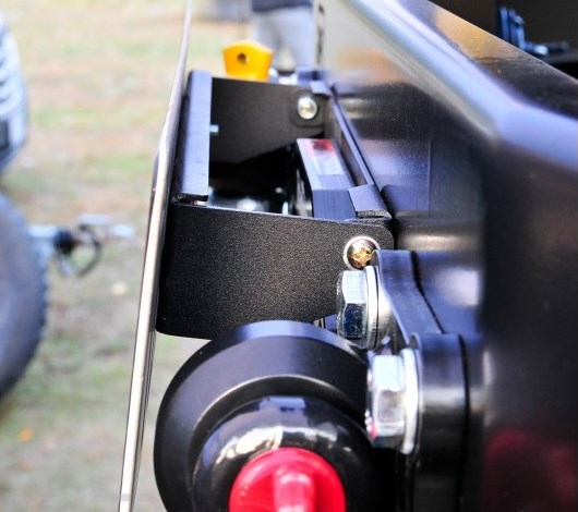Úchyt SPZ pro zakrytí průvlaku lana od navijáku. Výklopné. Vhodné pro alu průvlak od syntetického lana nebo průvlak na ocelová lana. NE pro rolny na ocelové lano. Součástí prodeje je jen držák spz, průvlak se prodává zvlášť.