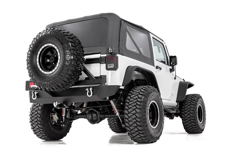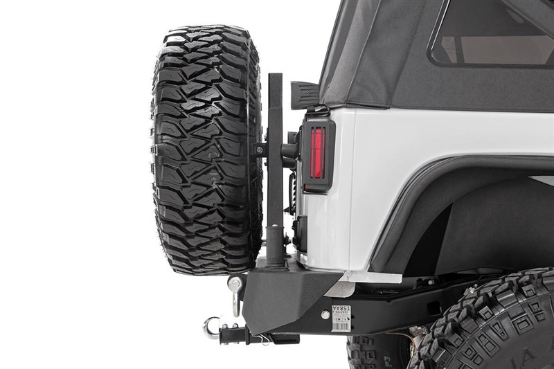 Popis: Zadní pevnostní nárazník s držákem rezervního kola Rough Country Jeep Wrangler JK