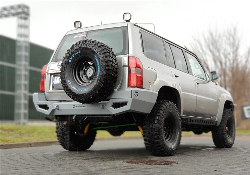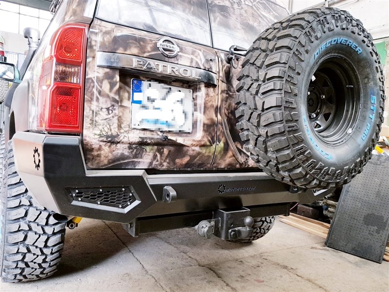 Popis: Zadní pevnostní nárazník s držákem rezervy Nissan Patrol Y61 GU4