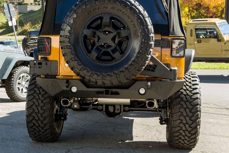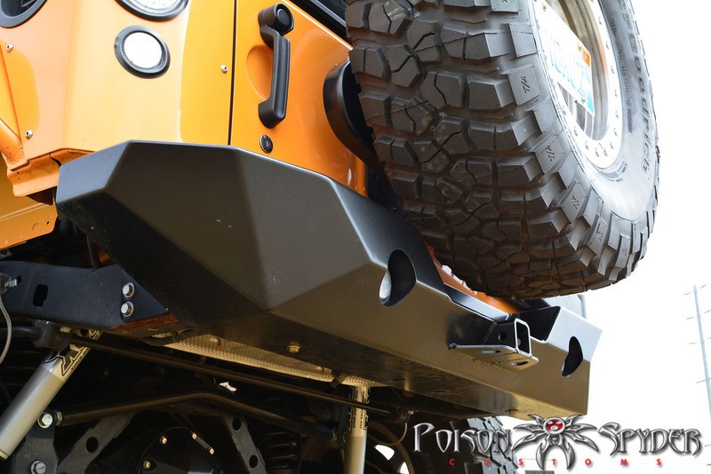 Zadní ocelový pevnostní nárazník s držákem rezervního kola Poison Spyder Rock Brawler II pro Jeep Wrangler JK.